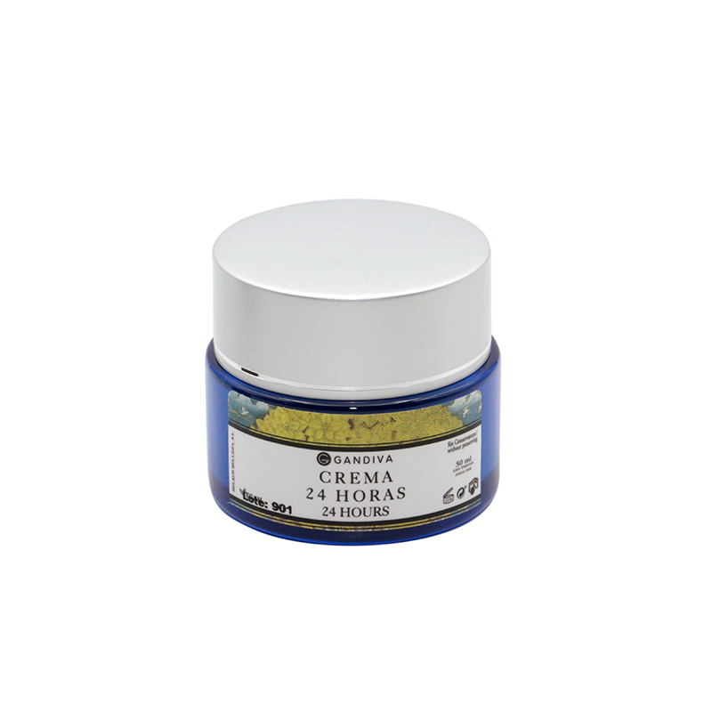 La crema 24 horas de Gandiva es una formulación para pieles sensibles a base de matenca de karité, Aceite Puro de Rosa Mosqueta y extractos de Mimosa, Centella Asiática y Caléndula.
